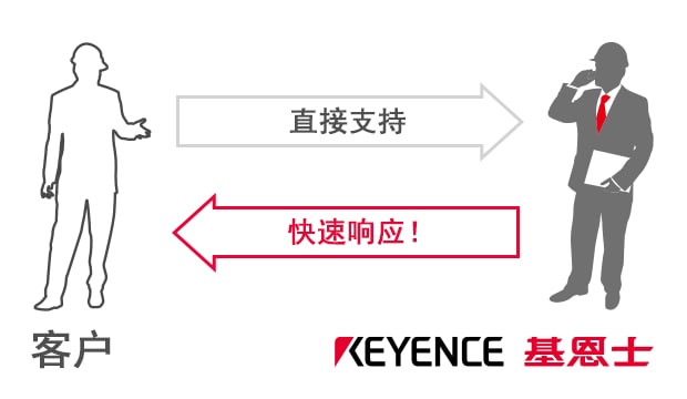 基恩士使用丰富的现场制造与自动化知识为客户提供支持。这包括从选型到在线运转(在采用产品之后提供现场操作指导与注意事项)的全面支持。