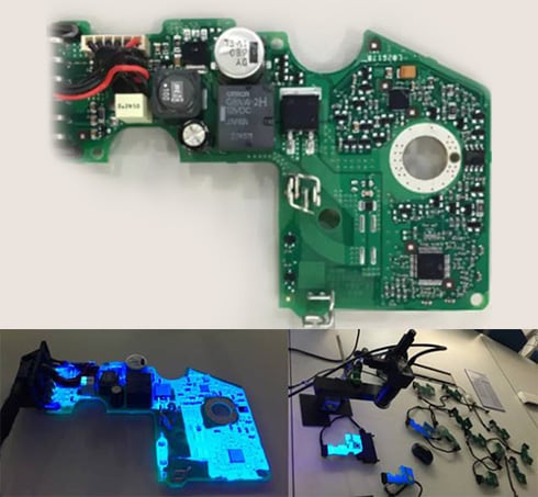 截止到目前,像2100万像素这样的高像素CCD一般应用在大视野,并要求高精度的地方。之前分享过减速器装配检测和大视野下PCB pin的正位度检测。今天主要想分享一例PCB上UV胶的检测。