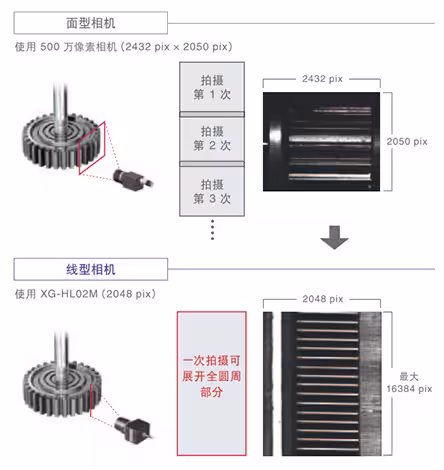 - 相比于平面相机,线扫相机主要优势体现在两个方面: