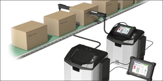 MK-U 仅需通过1 个操作面板,即可实现同时变更打标内容等操作。在遇到将相同内容打标在纸箱的两侧等情况时非常有效。