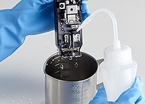 传统的“自动清洗”仅使用溶剂清洗油墨线路。MK-G 中新搭载的自动清洗,不仅可进行传统的线路清洗,还可将对确保打标品质所需要的喷嘴、电极板和回收孔等零部件冲洗干净。