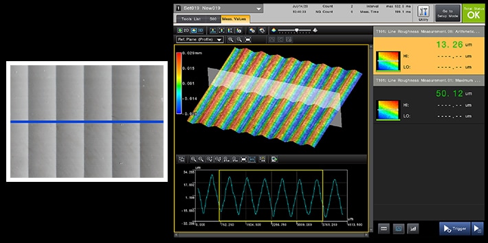 可以测量指定范围的线粗糙度(Ra、Rz)。 对于模塑品的表面粗糙度和打磨后的金属表面等,能够以最快0.13秒进行粗糙度的数值管理。