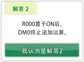 即使中断程序内正在使用CR2002(常开ON),也不会持续"在R000置于ON期间加算"。 因此,"DM0加1"为正确答案。