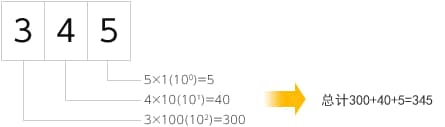 十进制时,各位为1(100)、10(101)、100(102)……的倍数。