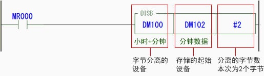 如果使用DISB(字节分离)指令,仅需1个指令语即可执行上述梯形图程序。