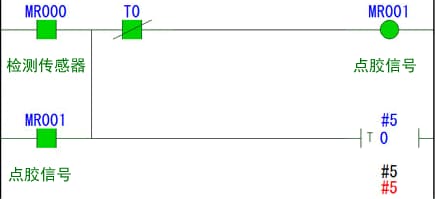 (2)MR0置于ON后,经过0.5秒后T0置于ON,且MR1复位。