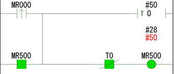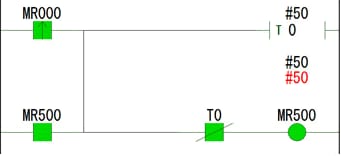 (3) 5秒后计时器(T0)置于ON,且MR500置于OFF。
