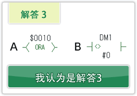 请从解答1至解答3中,选择要填入"A"、"B"的内容,使第4位开启时,MR000置于ON成立。