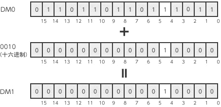因此,可通过DM1的值是否为0,确认DM0的第4位是否为开启状态。