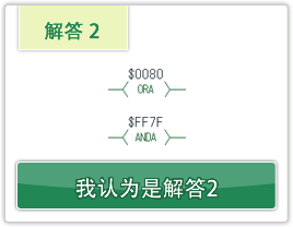 如需使用简化配线网络控制驱动设备,必须将DM的特定位置于ON以开始定位等。 现已创建通过MR500的ON/OFF将DM500的第7位置于ON/OFF的梯形图程序。 请根据以下梯形图程序,从解答1至解答3中选择适合填入空栏的选项。