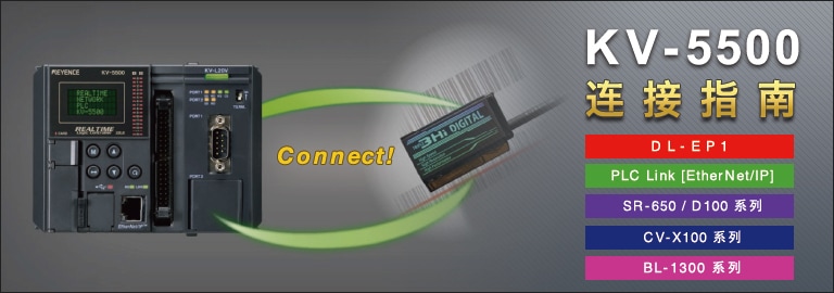 ★KV-5500 x DL-EP1 连接向导 ★KV-5500 PLC x 以太网 连接向导 ★KV-5500 x SR-650 / D100 系列连接向导 ★CV-X100系列连接向导 ★KV-5500/5000/3000 系列 xBL系列 连接向导