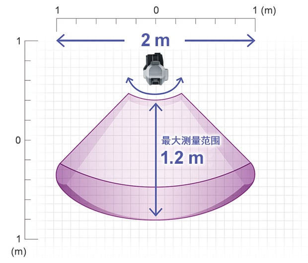 水平方向的最大测量范围为纵深1.2m×宽2m。