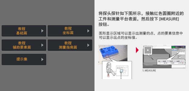 内置有带图像、简明易懂的测量流程使用说明和教程。