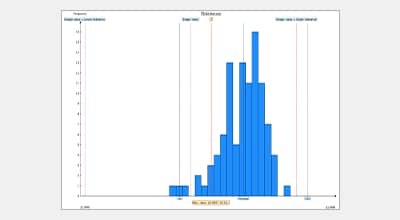 可通过图表确认所选测量项目的偏差。横轴表示测量值的范围、纵轴表示次数,可确认测量值以哪种值为中心,产生了怎样的偏差。