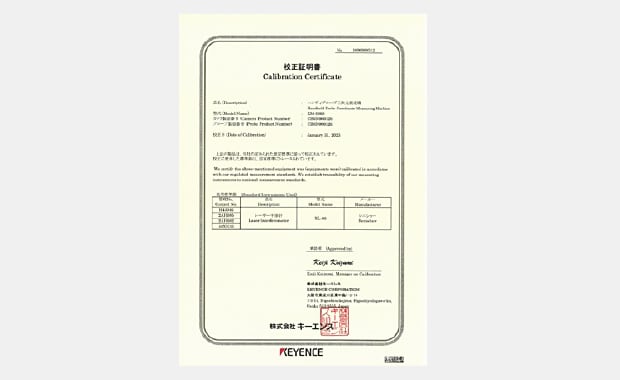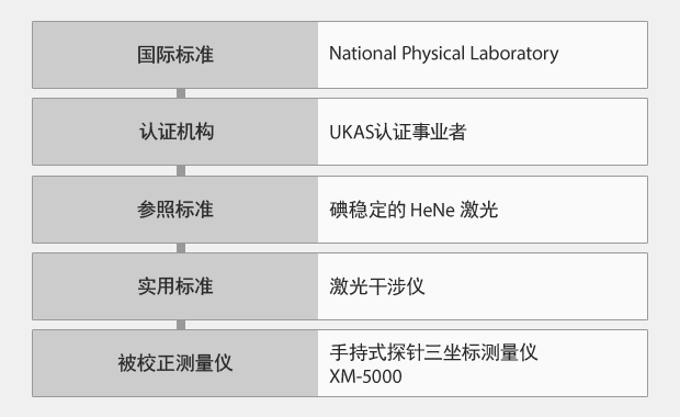 检测、校正使用的激光干涉仪由“UKAS认证事业者”校正,确立了符合国际标准的可追溯性。