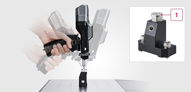 在探针前端球固定于专属夹具锥体上的状态下,只需以13个以上的不同姿势按下测量按钮,即可完成校准。