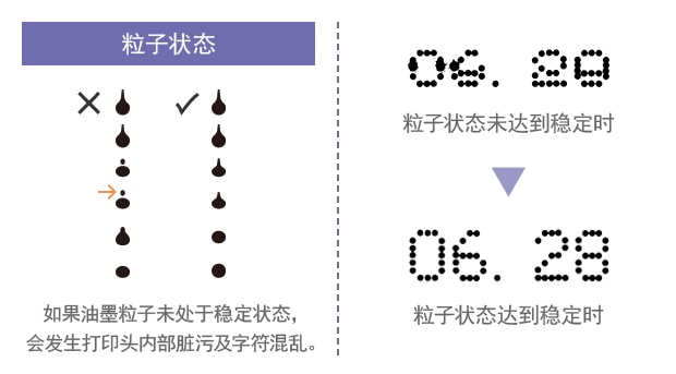 周围的环境、温度、油墨粘度等,会导致打印适用的油墨粒状态发生变化。MK-G 系列会以每秒10 次的频率监测油墨粒子,始终自动调整至稳定状态。不受周围环境的影响,打印始终清晰。