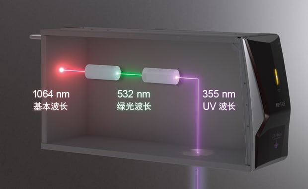 利用波长355 nm的UV激光,抑制对于目标物的损伤,实现高辨识度的刻印。