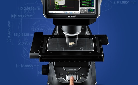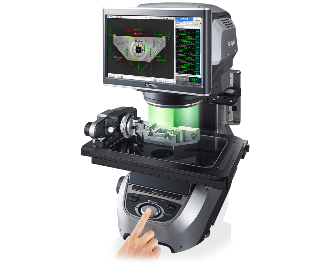 全新图像尺寸测量仪、投影仪、工具显微镜,在载物台上放置目标物后,只需按下按钮简单操作即可实现高精度测量。无需目标物的严格定位,仅需数秒即可测量多个位置。利用自动对焦实现无偏差测量和尺寸测量的自动化,缩短工时。