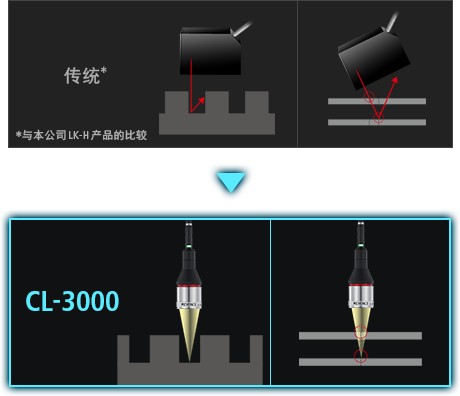采用“多彩共焦方式”。测量范围宽广且强力支持多重反射,可高精度测量各种形状及材质。