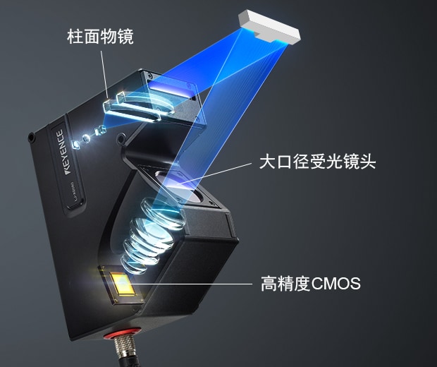 采用特别设计的柱面物镜,照射平行光。抑制目标物表面的反射光扩散。