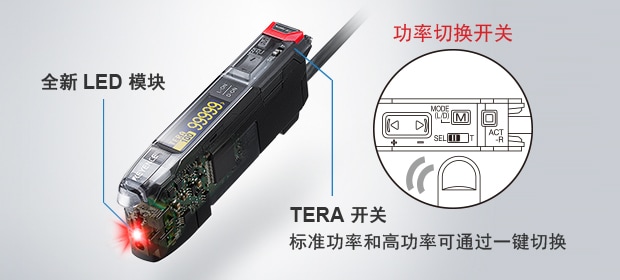 传感器的ON/OFF 与光纤的指示灯联动,能根据传感器的状态发出绿光,状态的可视化成为可能。
