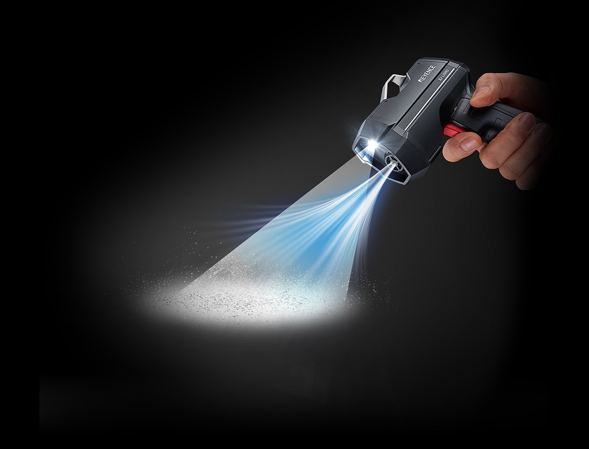 采用喷气机引擎技术中使用的拉伐尔喷管结构,实现超音速空气。另外,通过超音速空气与离子的组合,不仅可以去除异物,还能防止再次附着。*与本公司SJ-M400 系列产品的比较