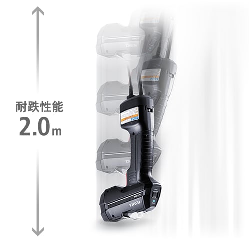 通过搭载可承受强烈冲击的橡胶防护罩,实现了从2.0 m高处掉落也不会损坏的超坚固机身。在使用频率高的现场也能达到高寿命及高耐久性,可放心使用。