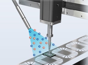 除电头采用超小型设计,直径仅为ø12 mm。由于离子发生部位采用前端直接消除静电的结构,所以不存在离子衰减问题。因此,小巧机身也可产生大量离子,实现高速度、高精度的静电消除效果。