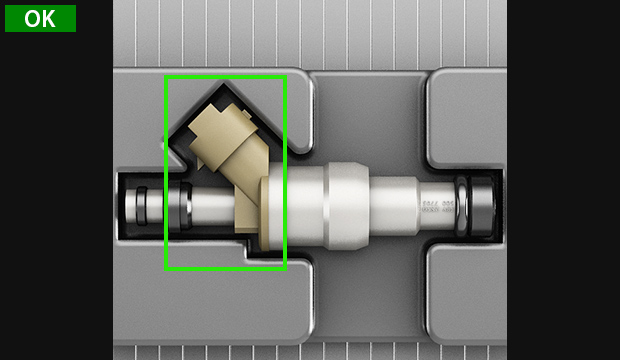 通过零部件的颜色差异识别喷油嘴的品种。即使来料的位置发生偏移,也能跟踪并检测。