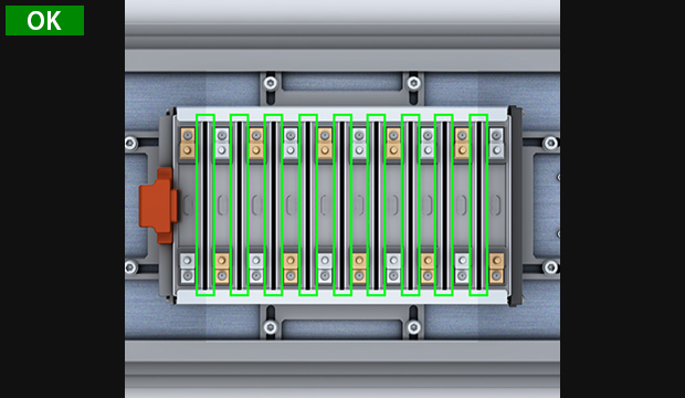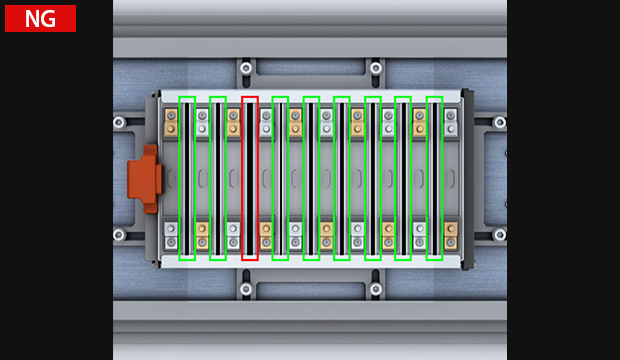 检测电池组装时的间隙。可通过观察宽度(尺寸)来识别是否存在过大间隙。