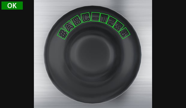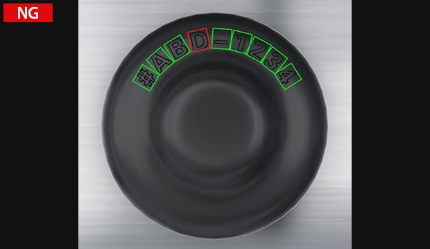 确认橡胶部件的刻印。即使是与背景同色的字符也能稳定检测。
