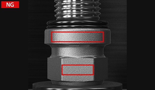 确认火花塞的字符。即使工件表面状态复杂,也能稳定识别/读取上面的字符。