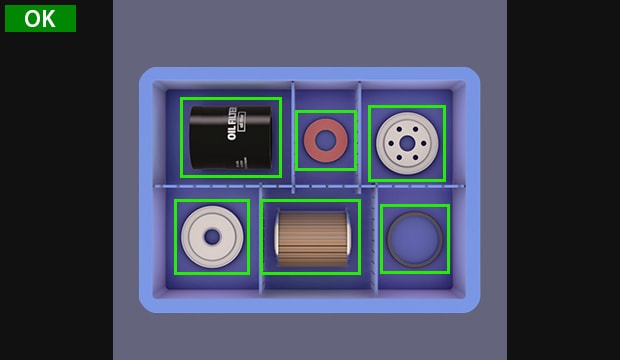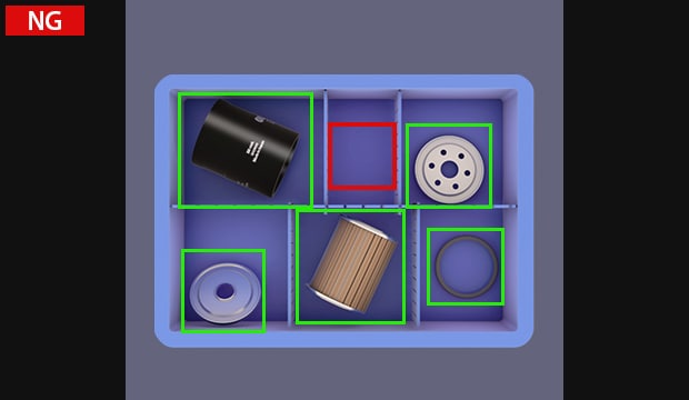 针对包装内是否放入正确的部件进行配套检测。即使部件的位置或角度发生偏移,也可准确计数。