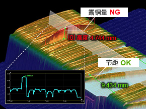 高速控制的 4 面投光投影仪和远心镜头可高速检测整个视野区域。