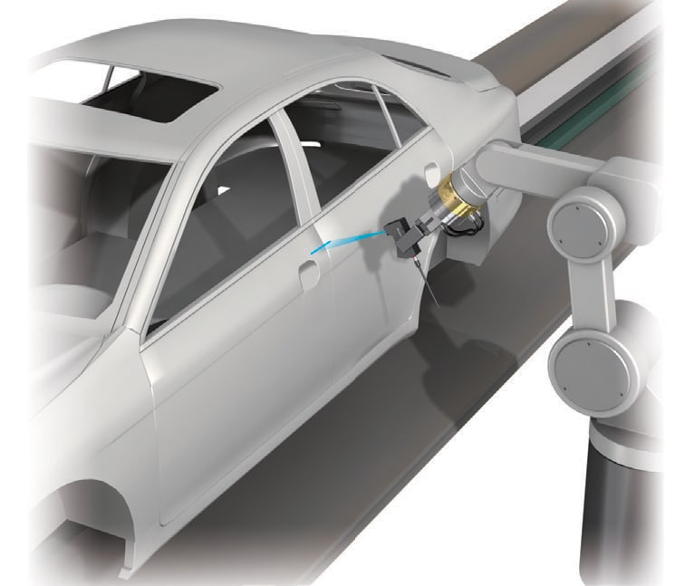 通过测量涂装前的车体组装状态,可大幅减少涂装后的补正。将传感器配置于多轴机器人中,也可测量错综复杂的部位。
