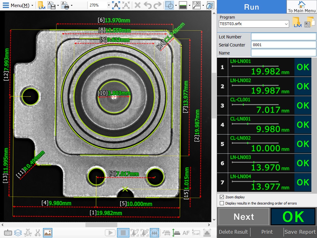 即使目标物表面的切削痕也能够清晰确认。能够同时测量与端面的距离、孔节距、R 面及 C 面倒角部。