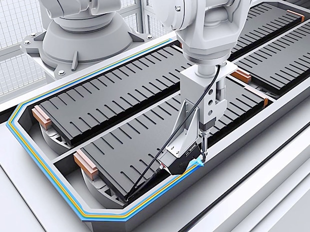 由于EV 车的电池安装在底板下,为了防水、防异物混入,要求电池外壳具有很高的气密性。通过采用大动态范围的超高灵敏度CMOS,可实现稳定的涂布检查。