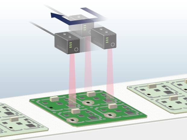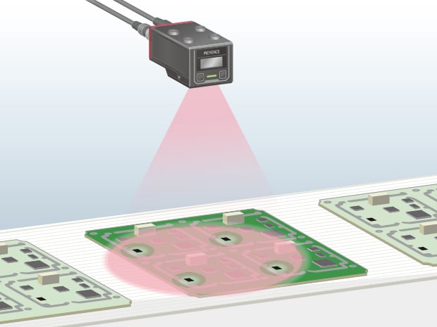 在多个印刷电路板上每个都存在二维码时,传统产品需使用气缸构造来移动条码读取器。* 具有大视野的 SR-2000 则可整体读取,无需气缸构造。
