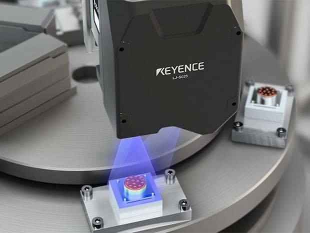 以往*需要使用接触式测量仪和2D相机分开检测工件的高度和位置信息,因此需要相应的费用和空间。使用LJ-S8000可一次性检测高度和位置,从而节省空间。