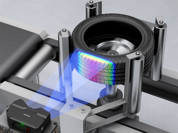 LJ-S8000内置自动扫描机构,无需旋转轮胎即可获取胎面花纹形状。只需将感测头对准工件即可测量,因此在产线旁的应用也日益增多。