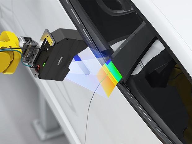 传统*方式需要扫描截面形状轮廓进行检测,而本系列的内置扫描机构能以面捕捉最大640×640 mm的宽广范围。通过将感测头搭载于机械手,可实现多部位的尺寸测量。