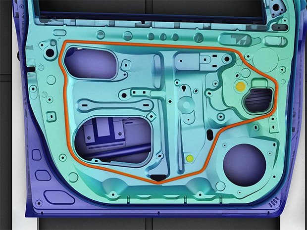 LJ-S8000拥有最大640×640 mm的测量视野,可不易受环境光及工件颜色影响获取3D数据。可一次性检测部件是否组装完整及密封材料的涂布量等多个项目。