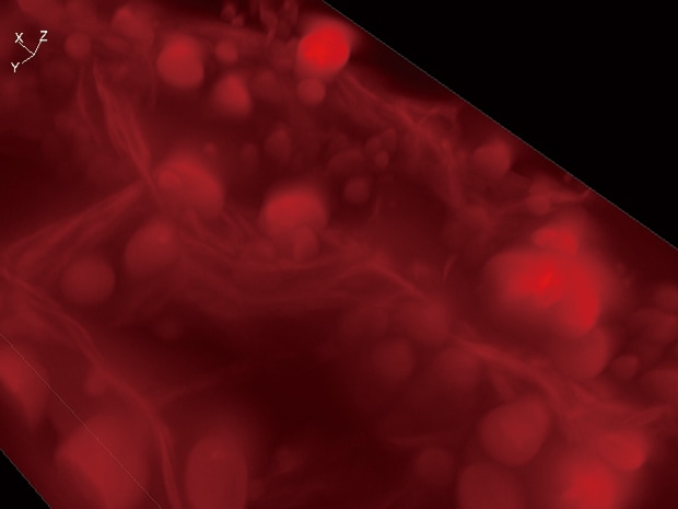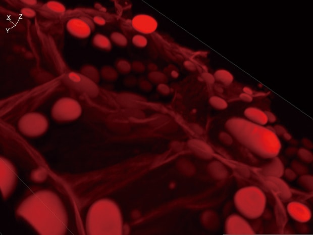 植物组织自身荧光强,在进行荧光观察时,容易受荧光模糊影响。如果引进一体化荧光显微成像系统 BZ-X 系列,使用“切片”功能,从光学上消除“荧光模糊”,可获取清晰的图像。