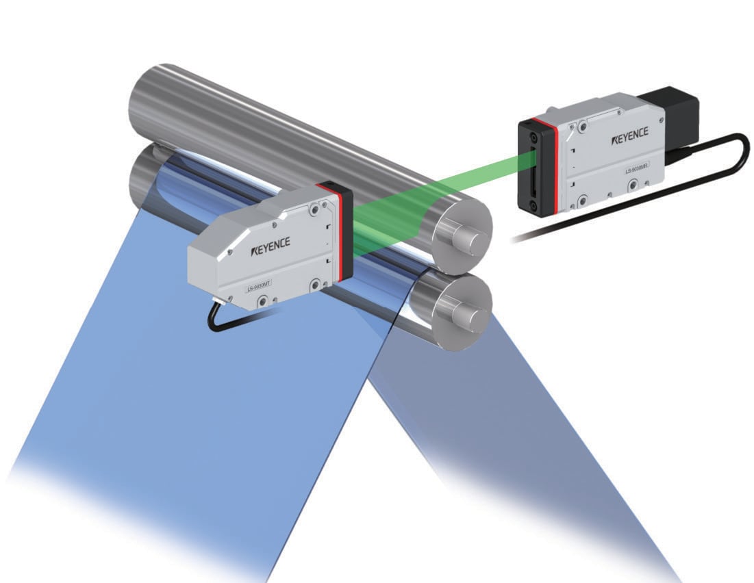 当辊筒上下方向上没有安装位置等限制时,可使用透过型传感头测量辊筒的摆动。LS系列可实现16000次/秒的超高速测量,准确捕捉旋转辊筒的摆动量。