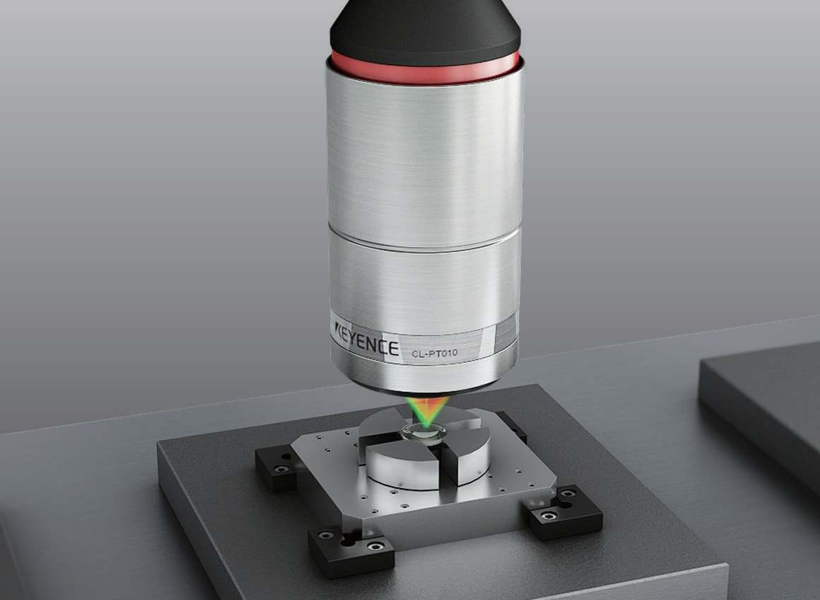 测量小型镜头的表面形状,计算曲率。CL 系列采用同轴彩色共焦方式,照射光开口为广角,只需接收部分反射光就能进行检测,对透明目标物的曲面也能进行高精度测量。