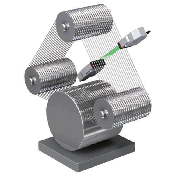 金属线锯的间距可能会随着主滚筒的经时变化和温度变化而变。利用 LS-9000 系列定期进行间距的非接触测量,可实时掌握滚筒的更换时间。