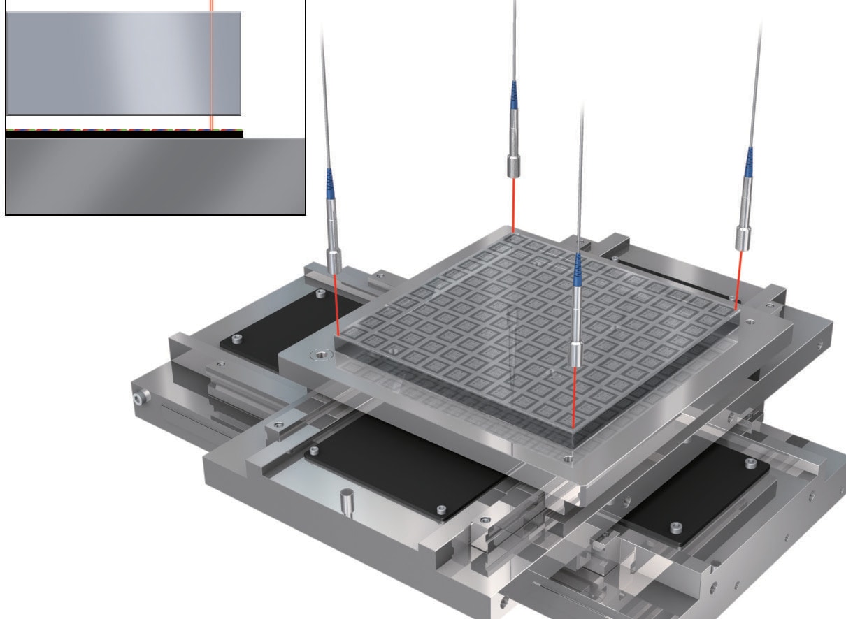 透过标线板识别其与晶圆之间的距离,测量缝隙。SI-F 系列配备了可装设在距离目标物约 80 mm 处的传感头。不会影响设备内的部件,可实现 0.25 µm 分辨率超高精度测量。