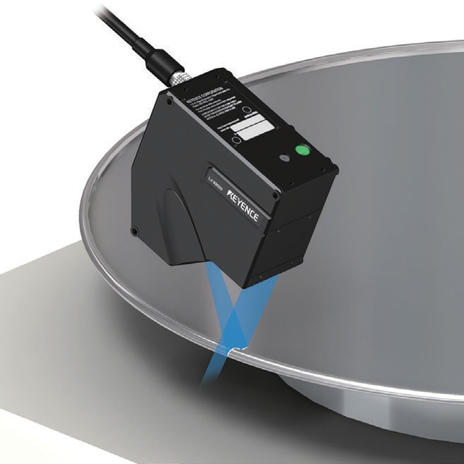 打磨大直径晶圆时,为了降低搬运风险和翘曲发生率,在加工时可能会多留数 mm 的外周部。LJ-X 系列能够瞬间测得上述外周部的宽度、高度差等数据。可以在转动晶圆的同时完成测量,实现全周形状检测。