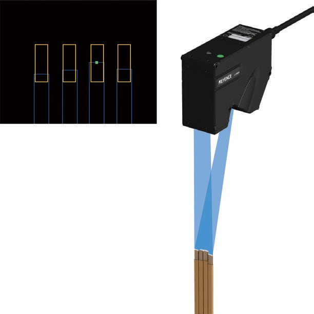 焊接前,通过事先测量漆包扁线的高度、位置,防止焊接不良。如果是 LJX 系列,即使是有光泽的金属零件也可以测量,不易受漫反射的影响。
